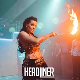 Elementen wie Feuer, Akrobatik/ Artistik und nach Bedarf auch einer Schlange setzt Sie ihre faszinierenden Kostüme,